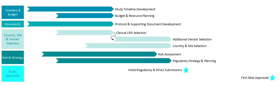 Clinical study planning & start-up typically encompasses the following components: